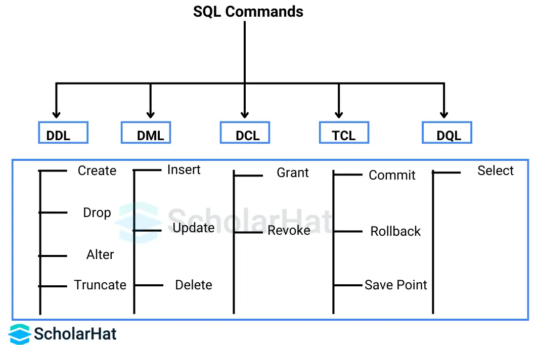 این نمودار دستهبندی دستورات SQL را نشان میدهد: